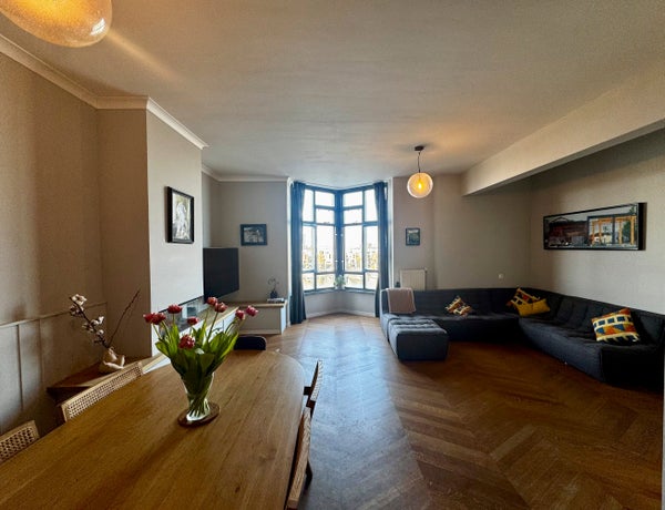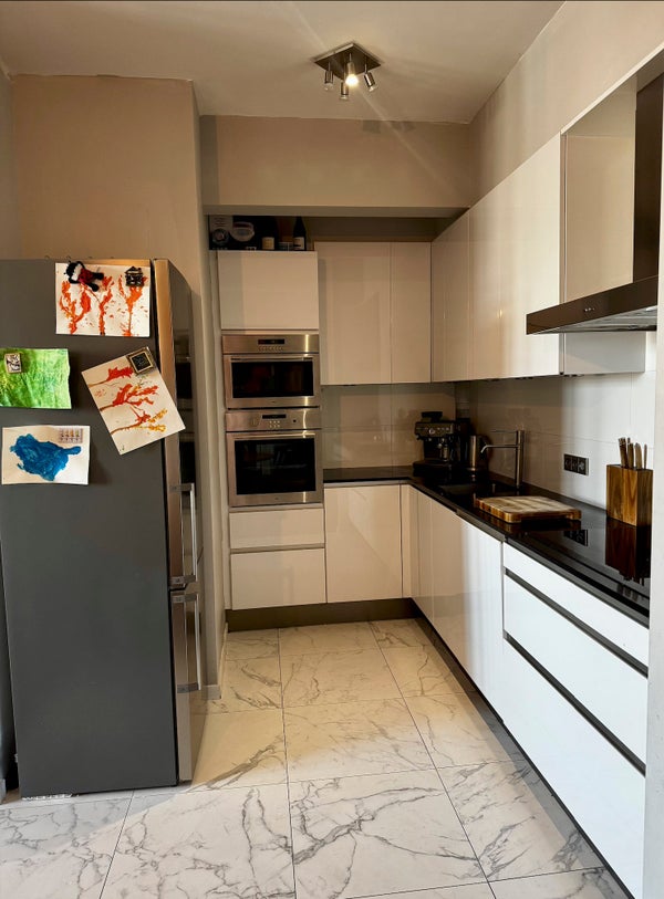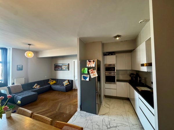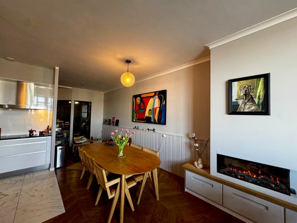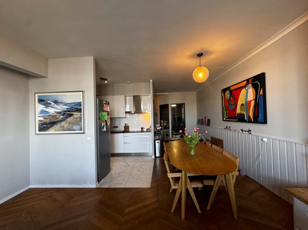 Spacious and beautifully finished 102 sqm apartment featuring three bedrooms and a bright open-plan living and kitchen area filled with natural light. The home includes two toilets, a full bathroom with both bath and shower, and oak parquet flooring throughout.