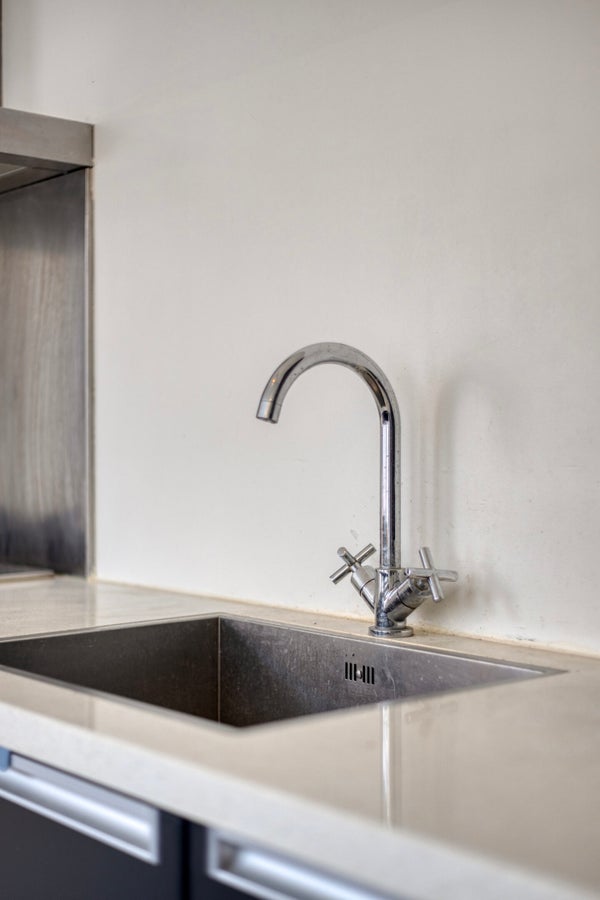 Upon entering, the kitchen is immediately located on the right-hand side and is equipped with built in appliances and an inductionplate will be installed. Adjacent to the kitchen is the living room, with a cozy dining area situated at the rear, creating a pleasant and practical layout of the living space. The apartment features a generous bedroom with ample space for a king-size bed and a large wardrobe, as well as an en-suite balcony. In addition, there is a second, smaller bedroom that is ideal for use as a home office or hobby room. The bathroom is fitted with a walk-in shower and a large washbasin. The toilet and a separate laundry area are located in the hallway, contributing to a practical and comfortable layout.
