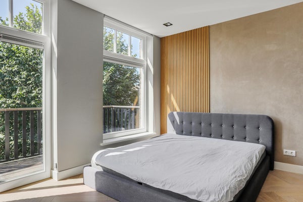 Insanely bright apartment of approximately 85 m2 with a spacious roof terrace of 35 m2 located in the beautiful Valerius neighbourhood in Amsterdam-Zuid, with unobstructed views of the Valeriusplein. The apartment has two bedrooms, a bathroom and a capacious balcony.