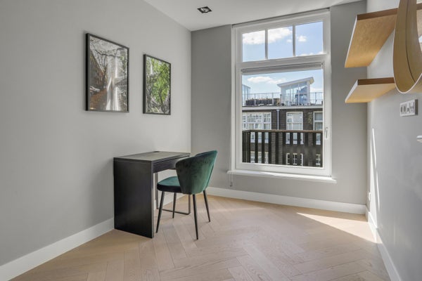 The roof terrace is accessible via the internal staircase to the fourth floor and gives a view over Valeriusplein, a part of Amsterdam-Zuid and Het Amsterdams Lyceum. In addition, the beautiful Vondelpark is just within walking distance.