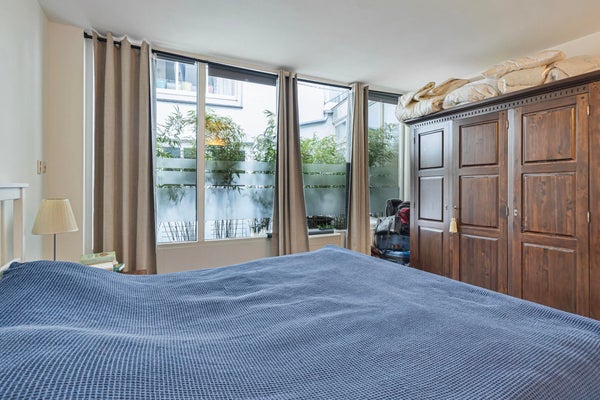 Located directly opposite the Dutch National Opera & Ballet, this property offers a unique blend of historical charm and modern comfort. The hallway provides access to the master bedroom and two bathrooms. The master bedroom is spacious and bright, thanks to large windows. The main bathroom features a large bathtub, toilet, bidet, and washbasin, while the second bathroom is equipped with a shower, toilet, and washbasin. The entire house is also equipped with underfloor heating.