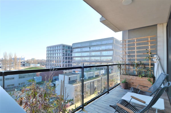 This modern apartment, built in 2017, offers stunning views over the neighborhood and Amsterdam-Noord.