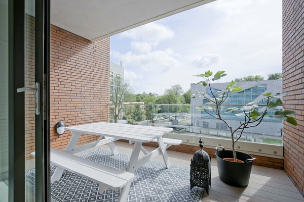 This modern apartment, located on the 2nd floor of a building from 2017, features a living area of 75 m² and a volume of 195 m³. It consists of 2 rooms, including 1 bedroom, and has luxurious bathroom facilities such as a shower, double sink, and bathtub. Additional space includes 3 m² of indoor area, an external storage space of 5 m², and a building-related outdoor space of 8 m². The lift offers convenient access, and the storage is ideal for extra storage needs. The rental price is € 3,950 per month, including service costs. Its energy label A indicates it is energy-efficient and is newly available for rent.