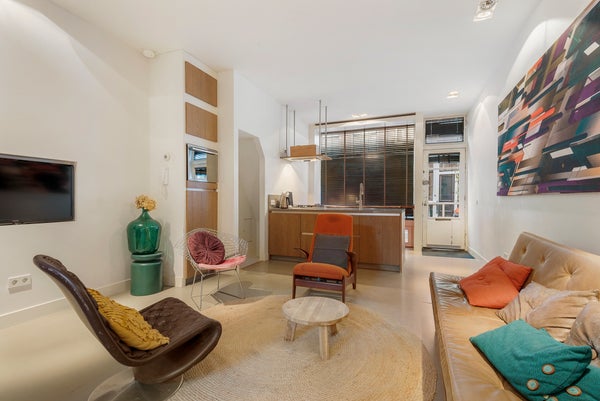 The apartment is situated in the historic and highly cherished neighborhood of Jordaan, right in the center of Amsterdam. This characteristic area is known for its atmospheric canals, narrow streets, and charming buildings. In the immediate vicinity, you will find a wide range of shops, cafés, restaurants, and specialty stores. Various public transport facilities are also within a short distance.