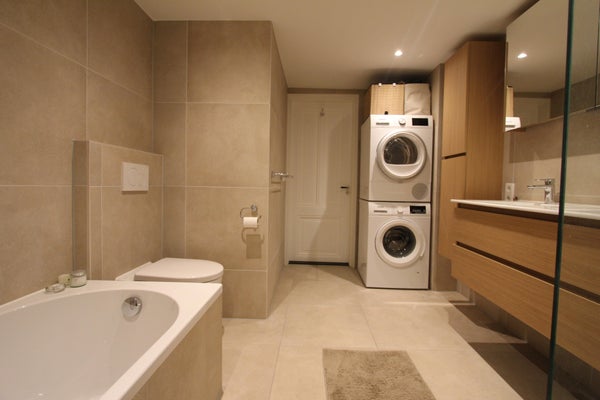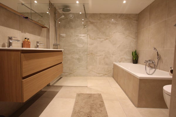 - New luxurious bathroom with bathtub, walk-in rain shower, and underfloor heating