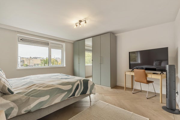 This unique and fully renovated apartment of approximately 157 m² is located in the Byzantium apartment complex by Vondelpark. It features a spacious living area with an open kitchen and dining room en-suite, three bedrooms, and two bathrooms. There is also a generous southwest-facing sun terrace of about 8 m², perfect for sunny days. Designed by architect Rem Koolhaas, the complex offers luxury amenities including a security system and a furnished rooftop garden. The location is ideal, with the vibrancy of the city center and the tranquility of Vondelpark easily accessible.