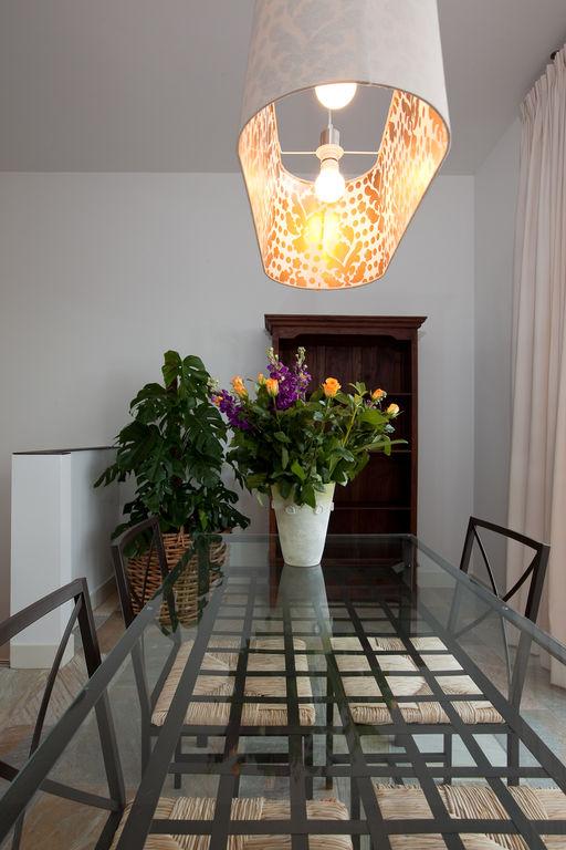 On the third floor is bright living room with dining area and modern fully equipped kitchen. Spiral stairs take you to the huge roof terrace.