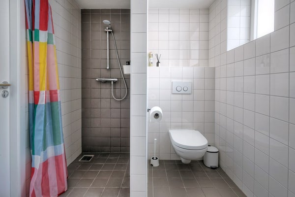 - Bathroom with shower, toilet, and sink