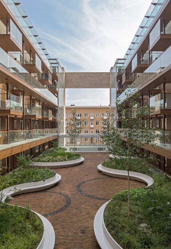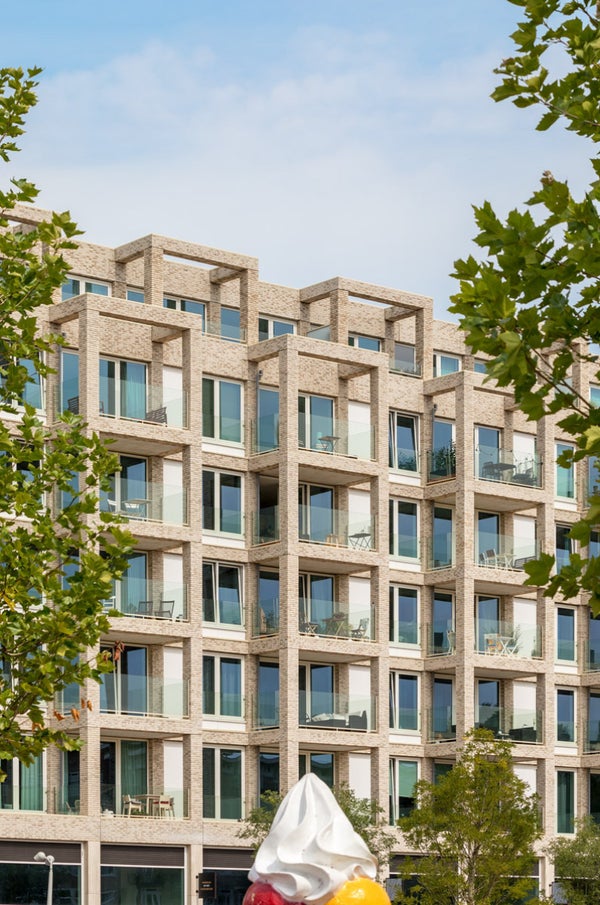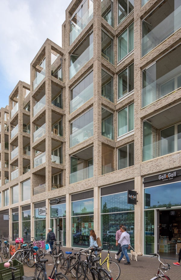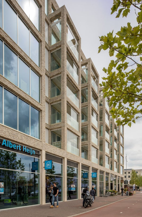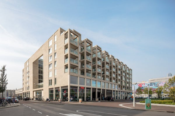 This luxurious 3-bedroom apartment on the sixth floor in Amsterdam-Zuid features an entrance with a hallway leading to a storage area with connections for a washing machine and dryer. At the end of the hall is a 6 m² bathroom equipped with a walk-in shower, bathtub, and a Sphinx sink. There are two bedrooms measuring approximately 15 m² and 8 m² and a spacious living room of 31 m² with an open kitchen that has built-in appliances. The 6 m² balcony is accessible from the living room. The building includes an inner garden, bike storage, commercial spaces, and a supermarket on -1. This energy-efficient apartment has underfloor heating and double glazing for comfort. An income requirement applies for renters and a lease of at least one year is necessary.