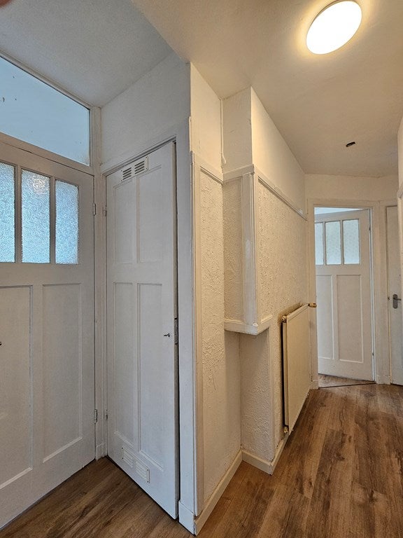 Entire flat has laminate floors and double windows.