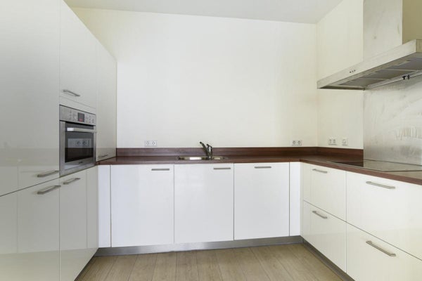 Available for rent from 01-01-2025: a spacious 3-room apartment in an attractive residential complex. This apartment of approximately 90 m2 has its own entrance and lift from the parking garage. The large living room with an open kitchen is equipped with luxury built-in appliances and leads to a balcony. There are two bedrooms, a separate toilet, and a renovated bathroom with a bathtub, shower, and double sink. The complex features a beautiful internal garden and necessary storage, including an external storage unit in the parking garage. The rental agreement is for a minimum of 12 months, with an income requirement of 48 times the monthly rent gross per year and a security deposit of 2 months' rent. Parking can be arranged through Interparking.