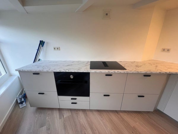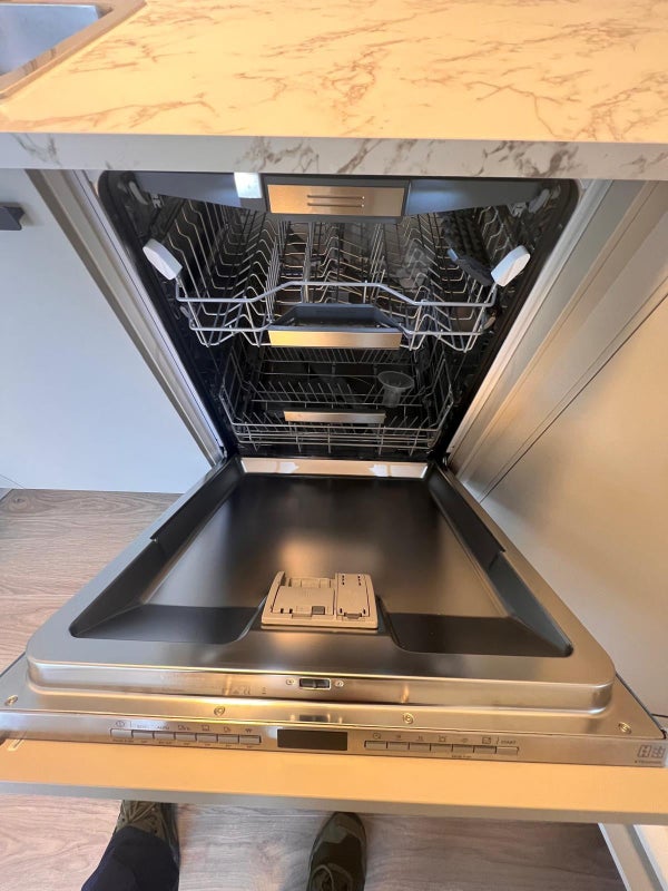 The brand-new modern kitchen is fully equipped with high-quality built-in appliances, including an induction hob, dishwasher, microwave/oven combination, fridge, freezer, and ample storage space.