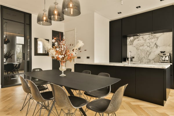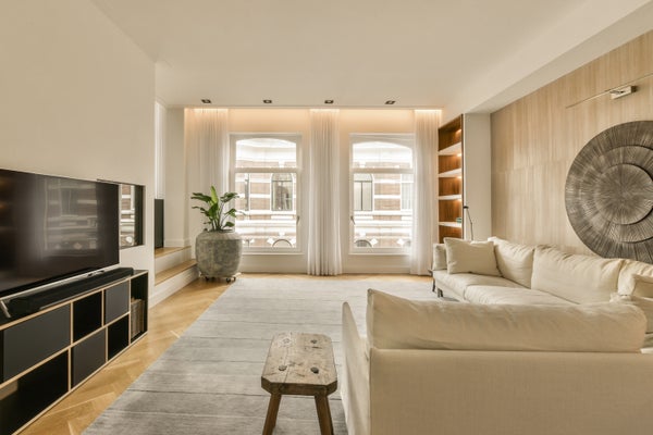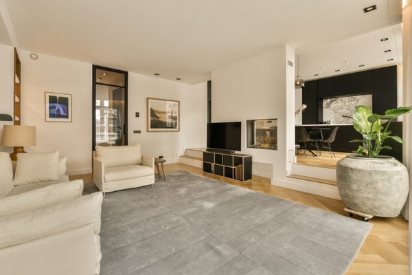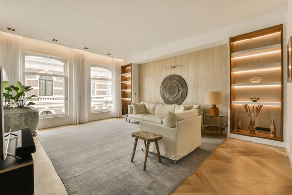 The apartment was created through the merge of two stately buildings, which were fully renovated in 2018. In 2021, the interior was further refined with attention to detail and the exclusive use of high-quality materials. The result is an impressive 10-metre-wide living space, featuring five large windows that provide abundant natural light and a wonderful sense of openness.