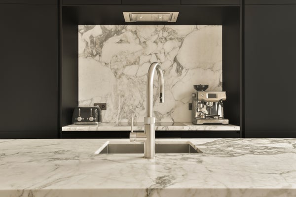 Luxury is evident throughout the apartment, underfloor heating throughout, an elegant herringbone parquet floor, bespoke built-in cabinetry, steel-framed doors, and refined finishes using marble and Italian designer furniture in both the kitchen and bathrooms.