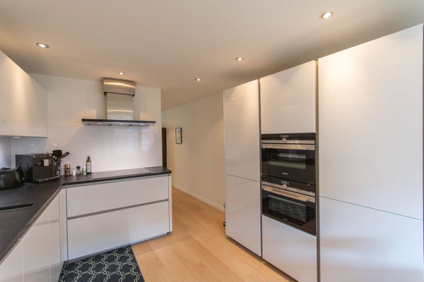 Living room: You walk into the spacious living room from the kitchen. There's a lovely balcony with views of the communal garden and canals on the left and right sides.