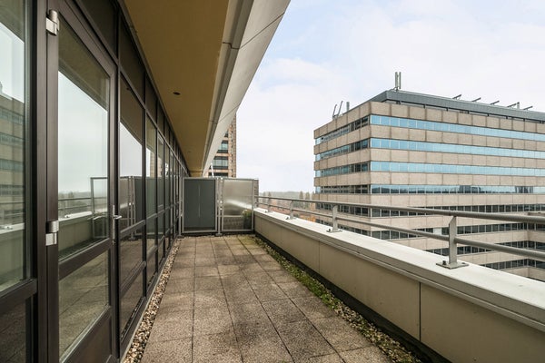 This exclusive penthouse on the 8th and 9th floors offers spectacular views of the Amstel, right next to Amstel station. Upon entering the first floor, you will find two comfortable bedrooms and a modern bathroom with shower and toilet. An internal staircase leads to the second floor, featuring a spacious living room with abundant natural light and a semi-open kitchen equipped with high-quality appliances. The kitchen opens up to a large southeast terrace, perfect for relaxation with stunning views. This floor also includes the master bedroom with en suite bathroom. With a living area of 156 m², this penthouse combines comfort and style in a prime location in Amsterdam.