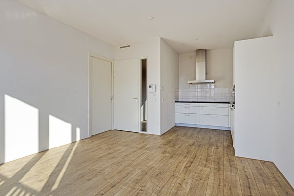 Available for rent from 2-2-2026: a luxury 2-room apartment for seniors (65+) in the Makroon apartment complex on Nieuwe Passeerdersstraat, opposite the Krakeling and next to the Koekjesbrug. This modern, light building offers 134 rental units ranging from 54 to 173 m2, divided into seven residential towers. The apartment on the second floor features approximately 83 m2 of living space, a living room with an open kitchen equipped with Siemens built-in appliances, a bedroom, a bathroom with a sink and shower, and a balcony overlooking the inner garden. The central entrance is a spacious hall illuminated by light from the garden. The Makroon is located in a lively neighborhood with various amenities, providing a safe, sheltered living environment with access to care and services.