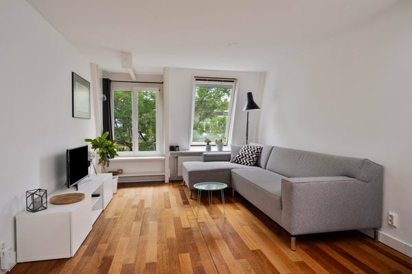 For rent: beautiful and luxuriously furnished apartment with balcony and very spacious roof terrace located in the nicest De Pijp district in the heart of Amsterdam! The house has one bedroom and a separate room for your home office. The house is ideal for a couple, single person or expat, no home sharers.