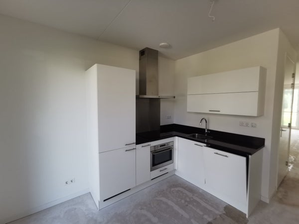 For rent: modern studio apartment on Zeeburgereiland, part of the De Brouwerij apartment complex. This apartment features high finishing standards, including underfloor heating and solar panels. You'll have access to an exclusive inner garden. The fully equipped kitchen comes with built-in appliances, and the bathroom includes a shower, sink, and toilet. An optional parking space is available. The area offers great amenities, including a supermarket and various dining options.