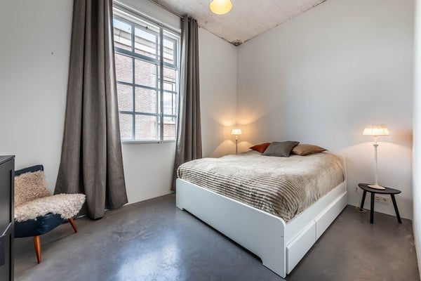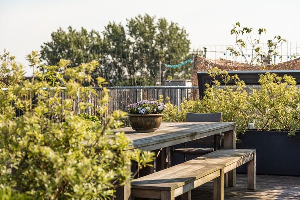 Located in the Czaar Peterbuurt, a quiet, lively area on the east side of the city center, you will find this unique and fully styled, furnished 3-bedroom loft apartment. The apartment has been created in an old elementary school building. It has a living surface of 161m2 with a ceiling height of 3.35m. Here you can enjoy lots of light through the large windows on three sides of the apartment. The apartment has a working wood-burning fireplace and a true roof garden of 113 m2 with a watering system.