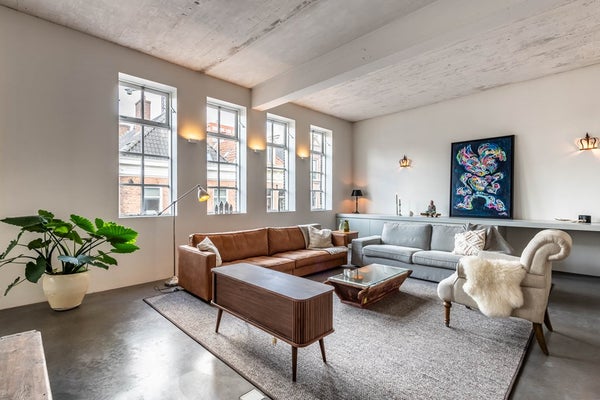 In this fantastic loft apartment, the old industrial elements have been preserved and with a mix of natural materials, a perfect balance has been created between space, design, and functionality. The interior is hand-picked by the owner, an interior stylist.