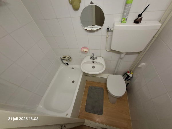 ** 1 bathroom, bathtub + toilet in the hallway