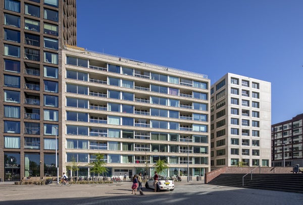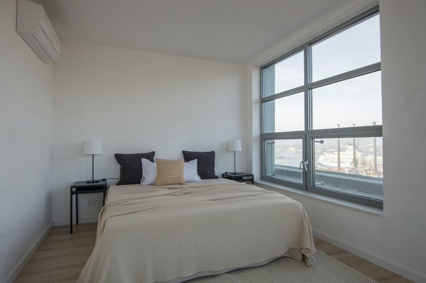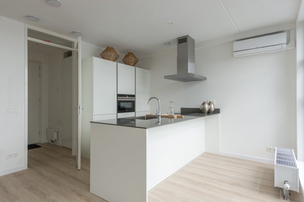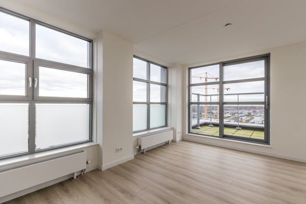 This spacious four-room apartment of 83 m² is located on the 8th floor and features a loggia facing northwest. The apartment includes three bedrooms, perfect for various uses such as a guest room or walk-in closet. The luxury Pallas Bruynzeel kitchen boasts a black composite countertop and is equipped with Siemens appliances, including a dishwasher, fridge-freezer, induction stovetop, extractor hood, and combi oven. The bathroom features a wide sink, walk-in shower, and designer radiator, with a separate toilet as well. Project De Werf is situated in Amsterdam North, just a short distance from the city center by ferry, bike, or car. The rental period is at least one year with a one-month notice period. Income requirements apply.