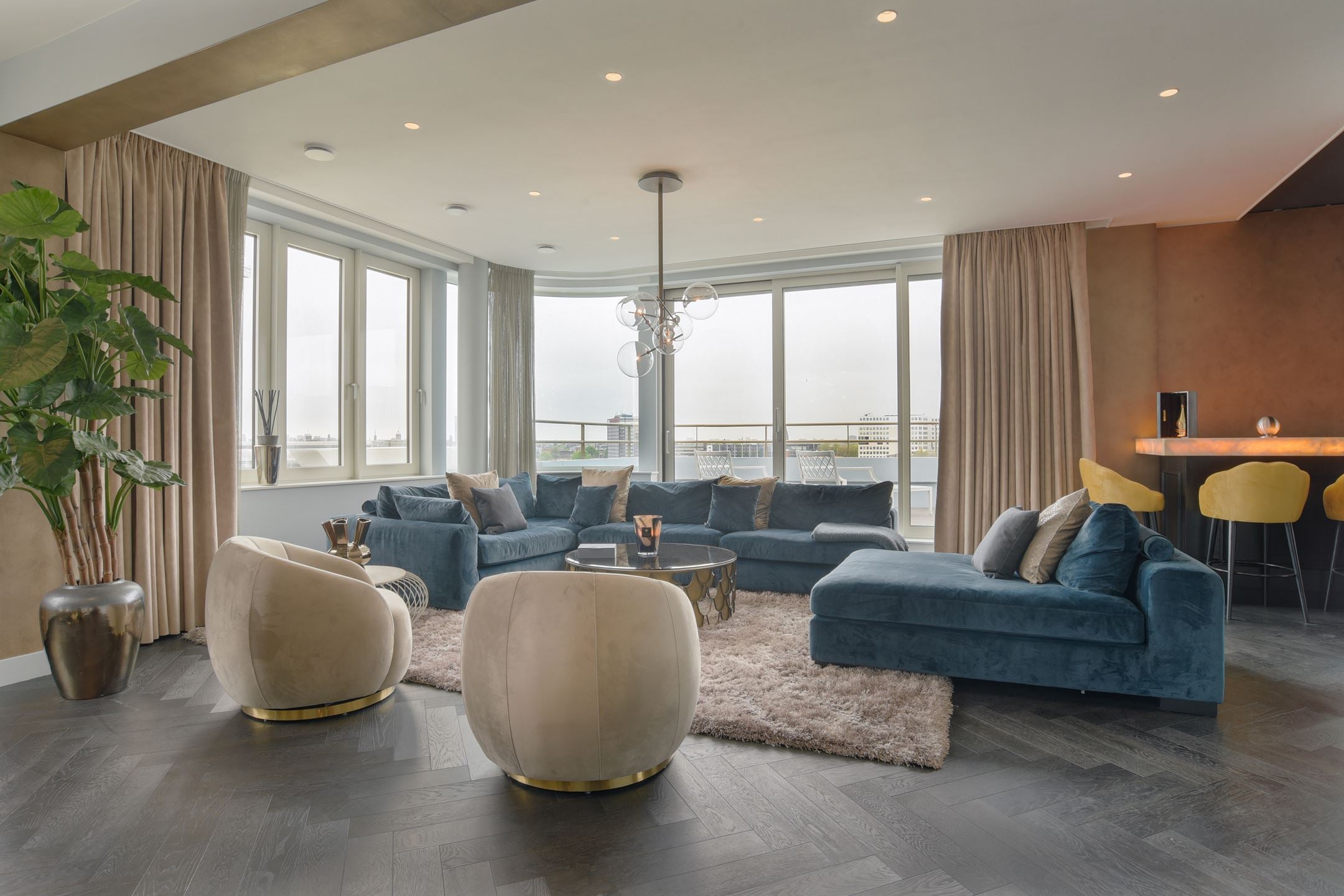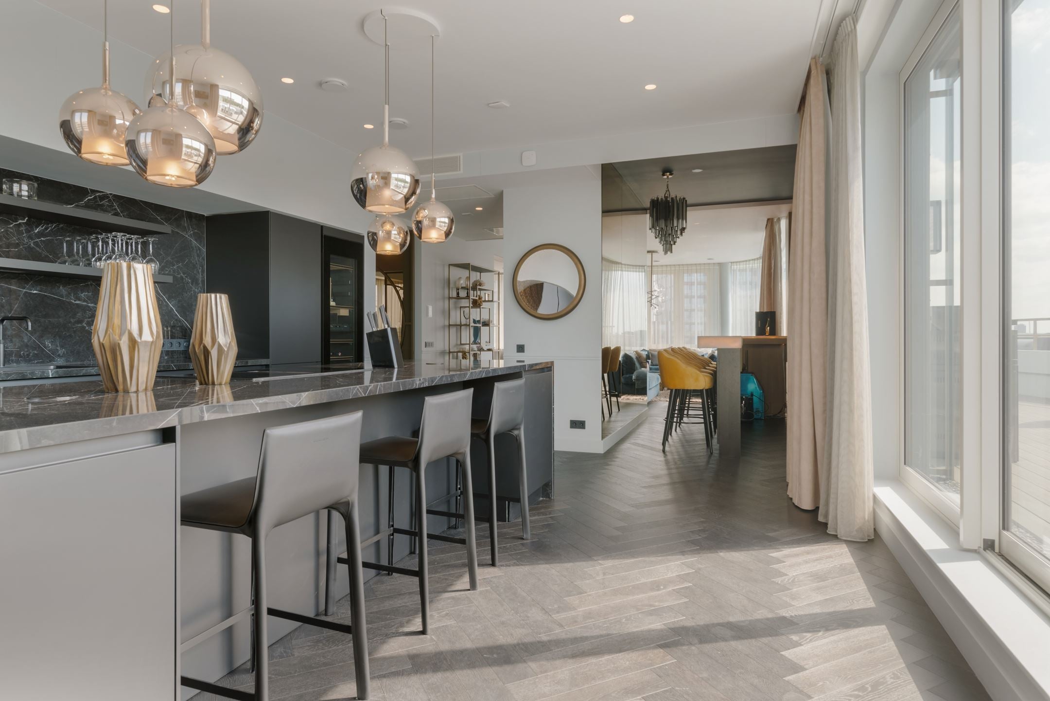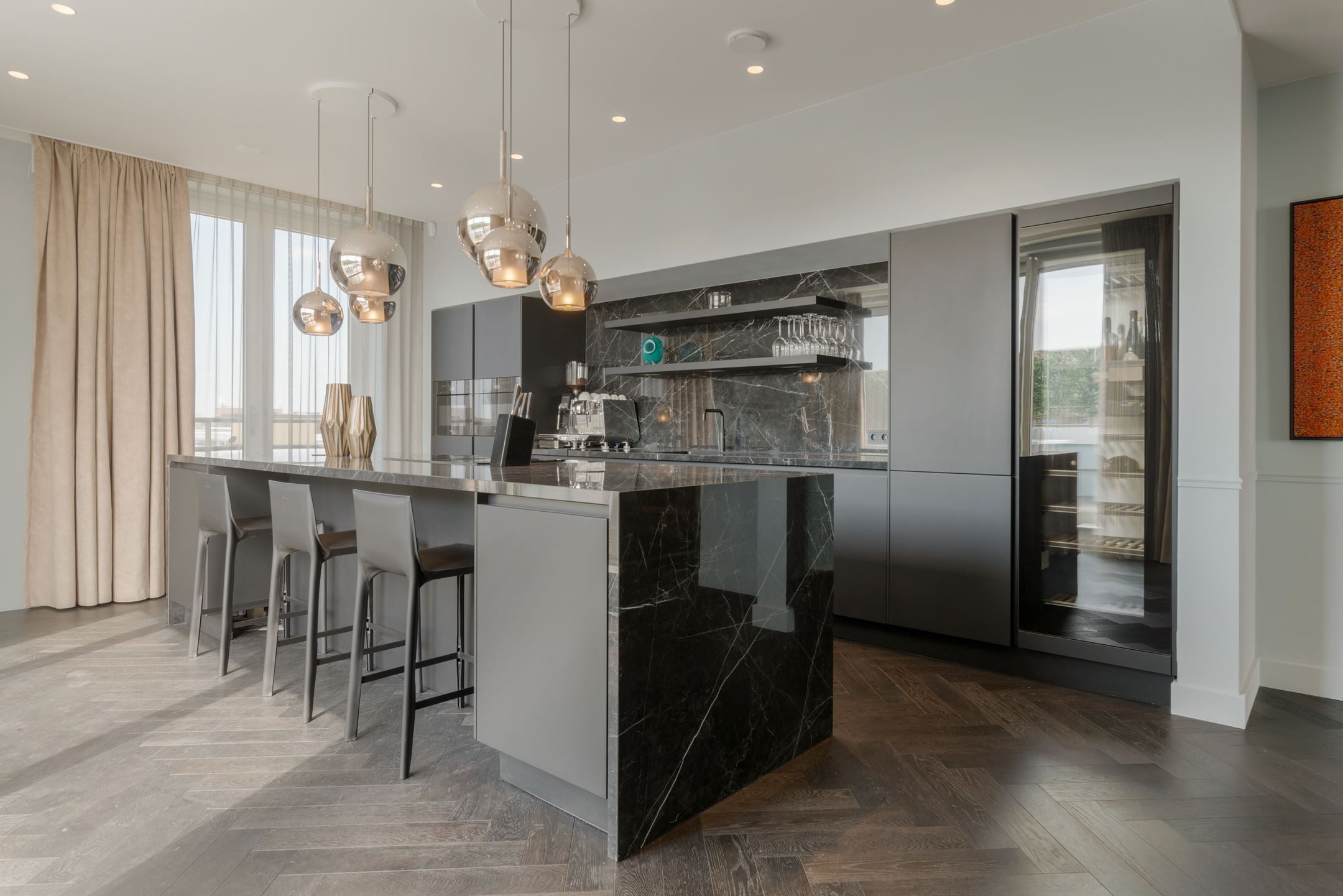This unique penthouse at Céramiquelaan 211 offers luxury and comfort in the heart of Amsterdam. Spanning 248m2, it features three spacious bedrooms and two stylish bathrooms with walk-in showers. You enter through a glass entrance with bronze steel doors, greeted by stunning views. The modern kitchen is equipped with high-end appliances, a black marble countertop, and a convenient cooking island. The large roof terrace boasts a lounge sofa and an outdoor kitchen with a barbecue, perfect for summer evenings. The property comes fully furnished and includes two parking spaces, with a sustainable air conditioning system. The ground lease is paid off until December 15, 2068.