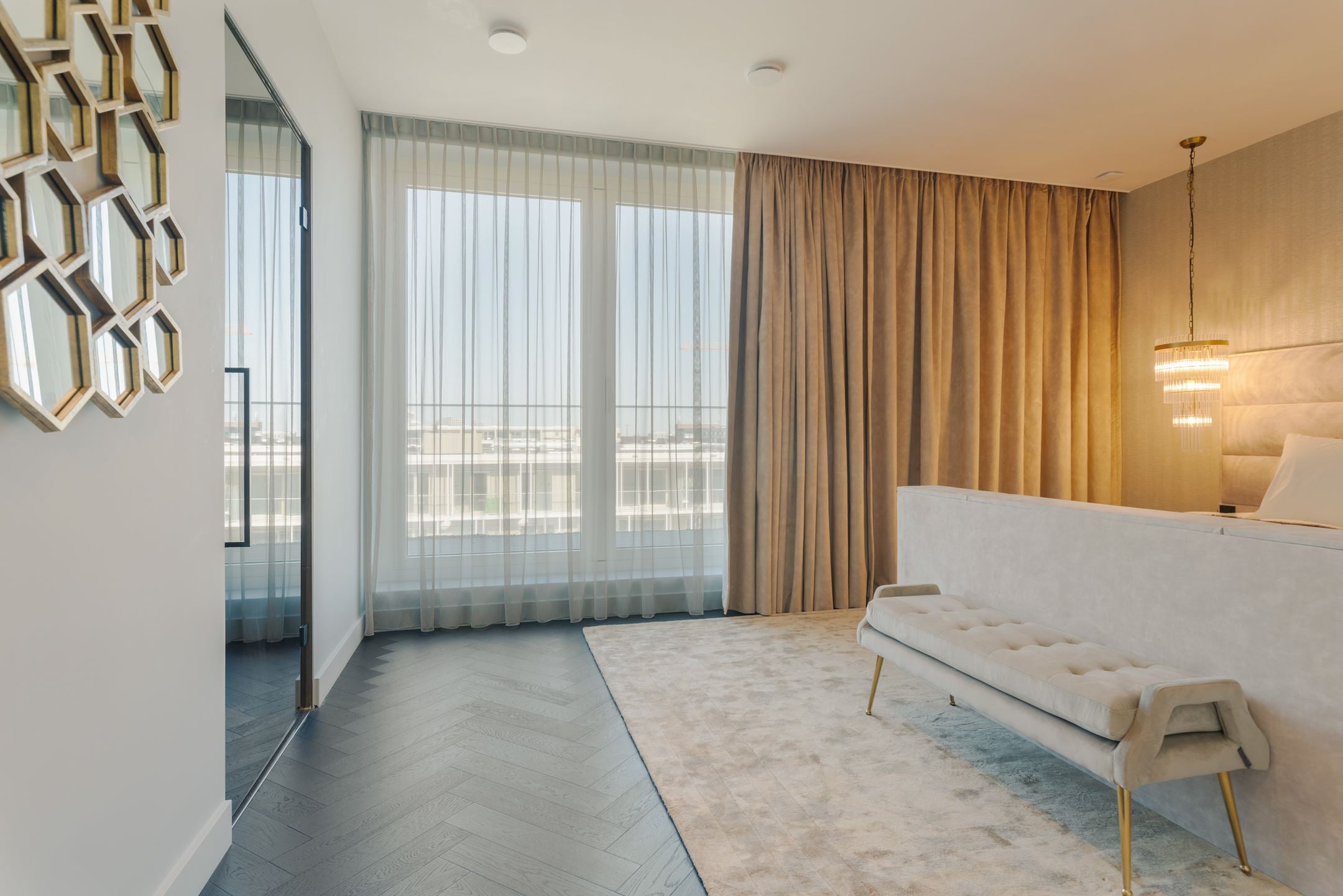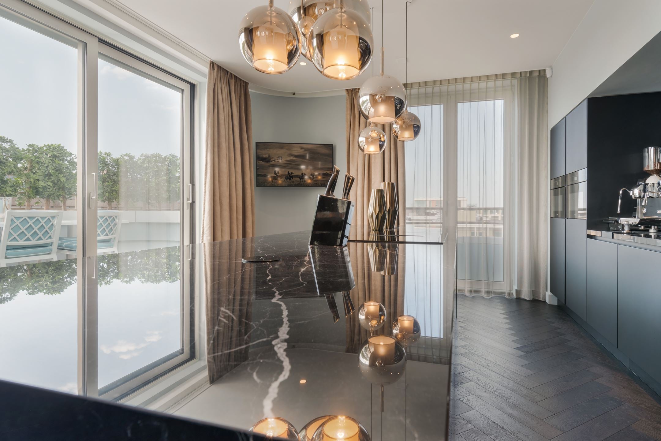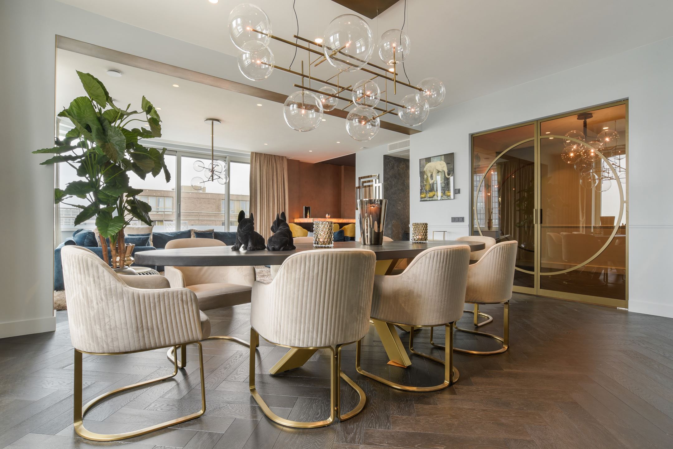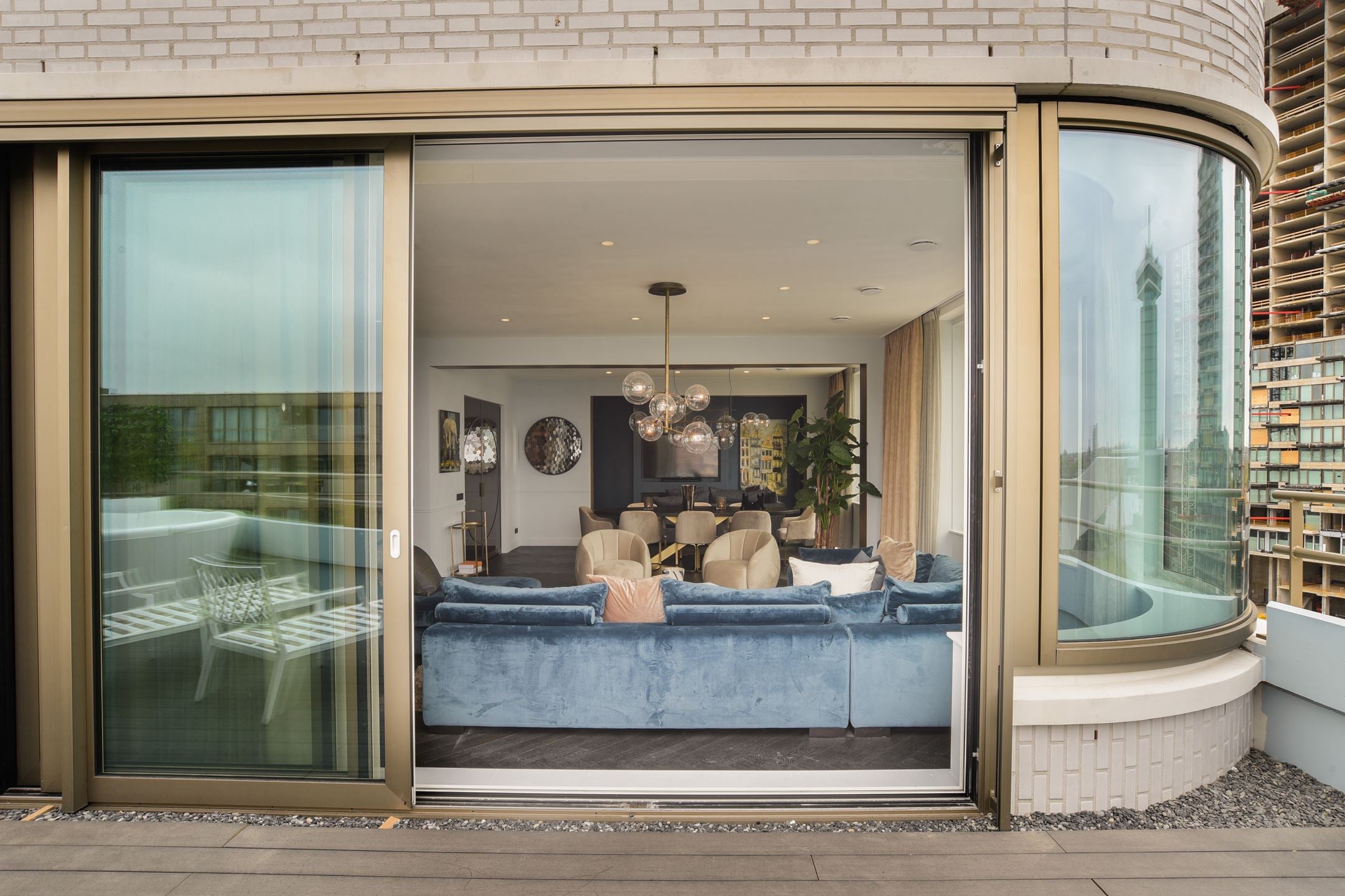 This unique penthouse at Céramiquelaan 211 offers luxury and comfort in the heart of Amsterdam. Spanning 248m2, it features three spacious bedrooms and two stylish bathrooms with walk-in showers. You enter through a glass entrance with bronze steel doors, greeted by stunning views. The modern kitchen is equipped with high-end appliances, a black marble countertop, and a convenient cooking island. The large roof terrace boasts a lounge sofa and an outdoor kitchen with a barbecue, perfect for summer evenings. The property comes fully furnished and includes two parking spaces, with a sustainable air conditioning system. The ground lease is paid off until December 15, 2068.