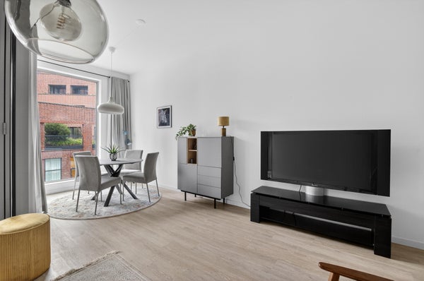 This modern and well-laid-out apartment of approximately 63 m² features one bedroom, a spacious balcony and a shared lift within the building. The property is offered furnished and is characterized by high ceilings of approximately 3 meters, creating a pleasant sense of space. With energy label A, the apartment is energy-efficient and comfortable to live in.