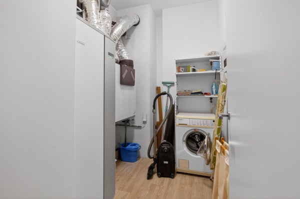 The bedroom is quietly located and of good size. The modern bathroom is fitted with a shower and washbasin. In addition, there is a separate toilet. The apartment also includes an internal storage room with a washing machine.