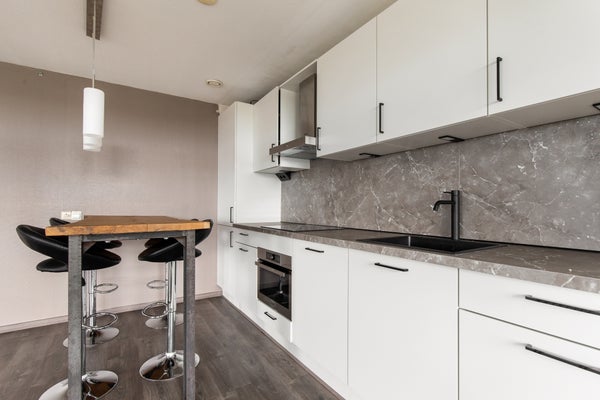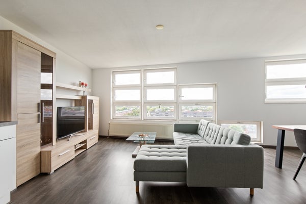With a generous living area of approximately 92 m², the apartment offers a pleasant and practical layout. The spacious and bright living room forms the heart of the apartment. Thanks to the large windows, there is plenty of natural light, creating a pleasant and open atmosphere. The living room offers plenty of space for a comfortable sitting area and a spacious dining area, perfect for cozy evenings with family or friends. From the living room, you have direct access to the balcony, where you can relax and enjoy the lively surroundings.
