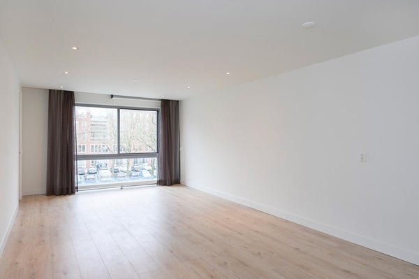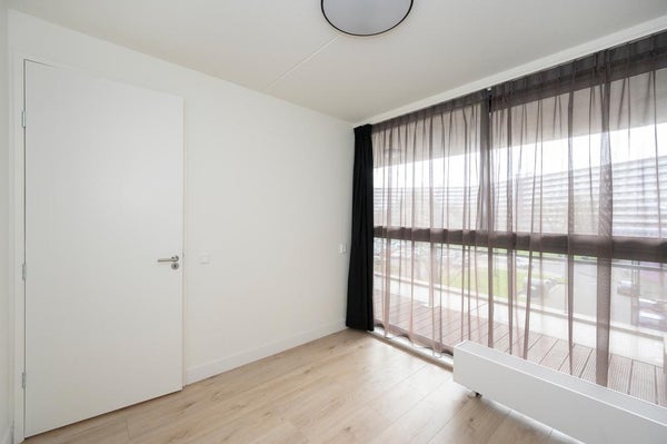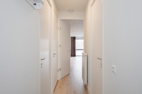 The spacious hall gives access to 3 spacious bedrooms with floor-to-ceiling windows, a luxurious separate toilet and at the end of the hall you enter through a door into the spacious open kitchen with plenty of cupboard space and which is equipped with all conceivable new Samsung equipment, including a induction hob, stainless steel extractor hood, dishwasher, fridge-freezer, oven-microwave.