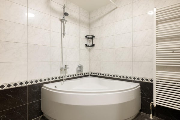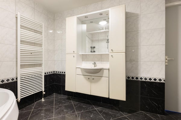 The bathroom is equipped with a bathtub, radiator, toilet, and sink. In short, this is a home that offers plenty of space and various layout options.