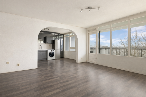 The Avenue Group is offering this bright and spacious two bedroom apartment, located on the third floor of the well-known Emerald Empire complex on the popular KNSM Island. The apartment offers beautiful views of the Ertshaven, 't IJ, and the Amsterdam-Rijnkanaal. The apartment has a pleasant layout and there is an optional private parking space available.