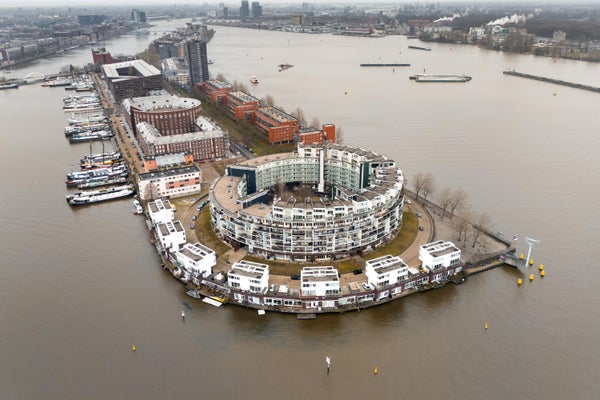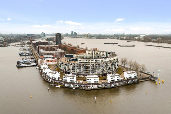 In the immediate vicinity, you will find various cafés and restaurants, including The Harbour Club, Kanis & Meiland, and Brunchroom. For your daily shopping, the shops on KNSM-laan and the Brazilië shopping center are within walking distance. The neighborhood is lively, creative, and child-friendly, yet quiet and central. You can enjoy walking along the water, and there is a jetty with a swimming ladder in the IJ river. All necessary amenities are within walking or cycling distance: shops, restaurants, and the Brazilië shopping center.