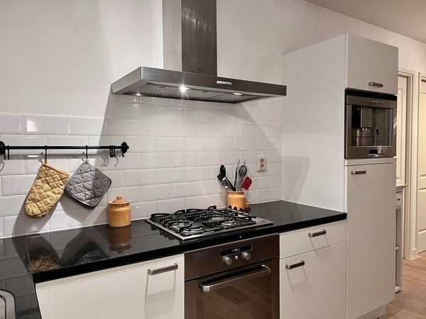 Located on the top floor in the highly sought-after De Pijp neighborhood, this fully furnished two-bedroom apartment offers stylish living with laminate wooden flooring throughout. The spacious open-plan living and kitchen area is modern and well-equipped with quality appliances, including a coffee machine.