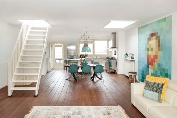 This centrally located penthouse in Overtoom is located in the heart of Amsterdam, located around the corner of Van Baerlestraat, within walking distance of the Vondelpark, Leidseplein and the Museumplein (Van Gogh and the Rijksmuseum 700 mtr). Nearby you can find everything you need: cozy restaurants, cafes, nice shops, the new halls and more.