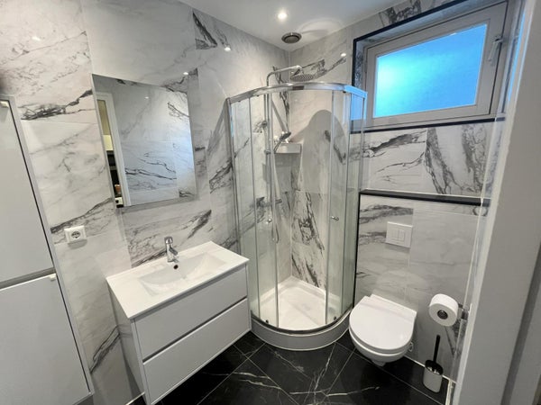 Situated in the heart of the city center in a fantastic location, this luxurious, freehold, 3-room apartment, renovated in 2024, sits on a beautiful canal. It features a new bathroom, kitchen, floors, and plastered walls.