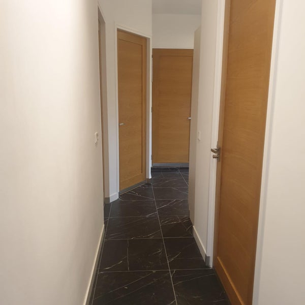The entrance and hallway are well-maintained. The beautiful wooden doors in the hallway and bedrooms are used throughout the apartment.