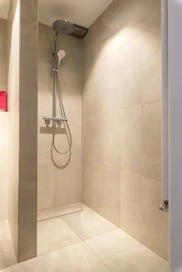 The property has two spacious bedrooms with en-suite bathrooms. The first bathroom is very spacious and luxuriously equipped with a bathtub, extra storage space, underfloor heating, a toilet, a walk-in shower, and a matching bathroom cabinet. The second bathroom offers a practical walk-in shower, toilet, and washbasin, ensuring comfort and convenience for you and your family.