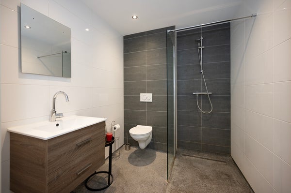 Entrance with access to the living room, bathroom, and bedrooms. The apartment features a bright and efficiently laid-out living room with access to a balcony. The open kitchen is equipped with various built-in appliances, including a cooktop, extractor hood, dishwasher, and fridge-freezer combination. At the rear of the property are two bedrooms, of which the master bedroom has access to the balcony and includes built-in wardrobes. The second bedroom is suitable as a bedroom, home office, or guest room and also offers storage space. The spacious rear balcony is favorably positioned facing southeast. There is also a separate laundry room with additional storage space. The bathroom is practically designed and fitted with a shower, washbasin vanity unit, and toilet. The apartment is finished with a light wooden floor throughout.