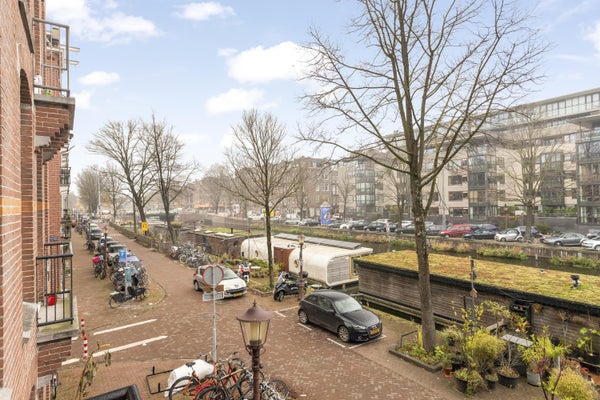 Wonderfully situated along the water, close to De Hallen and the many cafés, restaurants, and shops on De Clercqstraat, and within walking distance of the Jordaan. This popular location lies on the border of the Da Costa and Bellamy neighborhoods. The lively area offers a wide variety of shops, cafés, and cozy restaurants, as well as a cinema, a library, and several specialty stores and supermarkets (Marqt, Albert Heijn, Dirk).