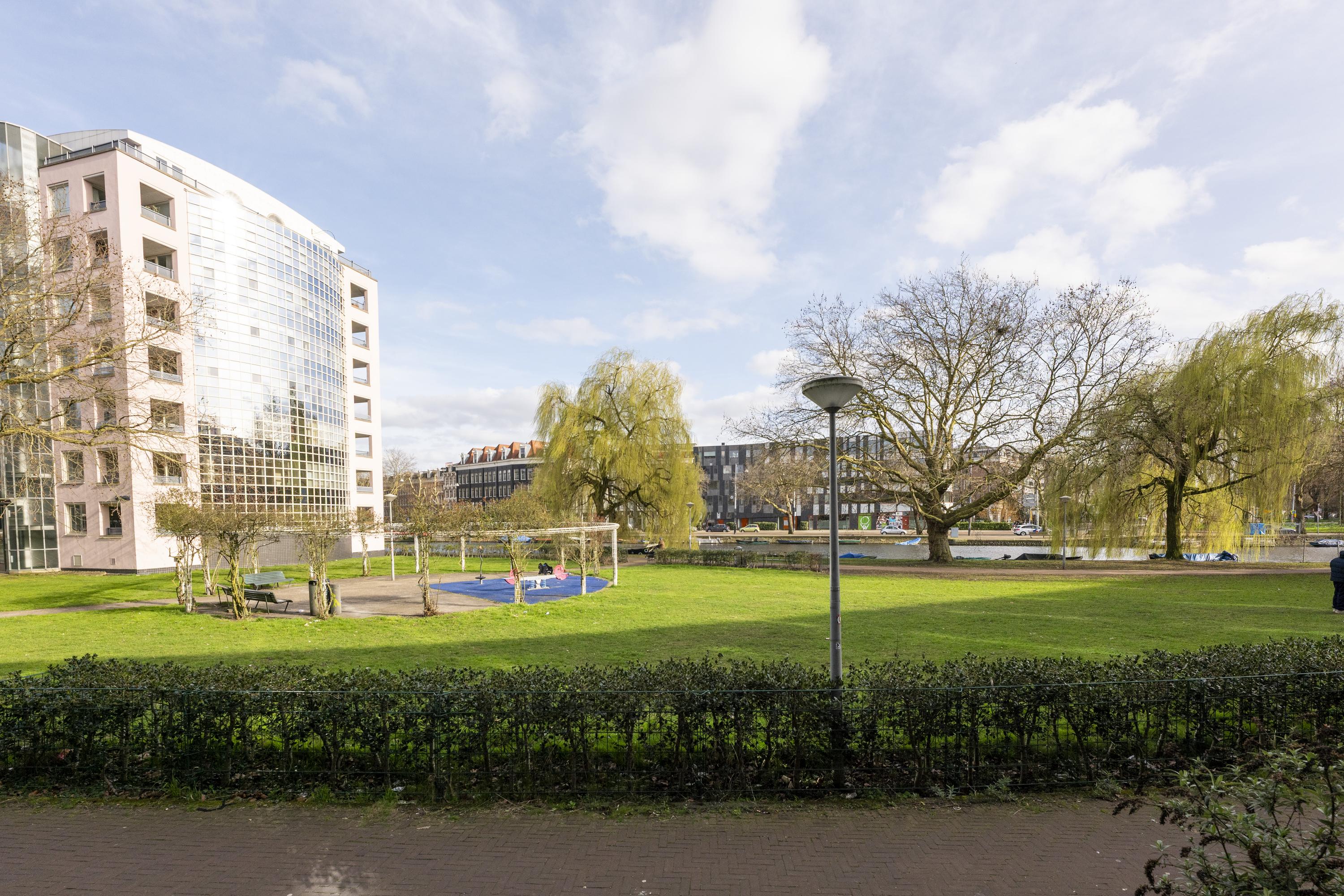 This 4-room apartment of approximately 112 m² is located on the ground and first floors, featuring a southeast-facing balcony. It is situated at the quiet rear of Sarphatistraat in central Amsterdam, near Hoogte Kadijk. Public transport is excellent, with tram and metro stops within walking distance. Entering, you find a hall, a closed kitchen at the front, and a living room at the back with terrace access. On the first floor, there are three bedrooms and a bathroom with a shower and sink. The apartment includes a storage room in the basement. The rent is € 2,400 per month, excluding gas, water, and electricity. Available immediately, with a minimum rental contract of one year.