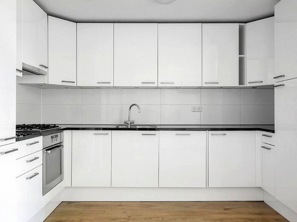 The apartment features a bright living area with wooden flooring and a neat finish throughout. The modern open-plan kitchen is fully equipped. There are two well proportioned bedrooms, a bathroom with shower and washbasin, and a separate toilet. Large windows provide abundant natural light throughout the apartment.