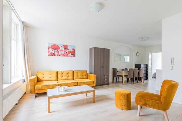 We offer this furnished apartment on the Tweede Hugo de Grootstraat between Oud West and the canals with two bedrooms.