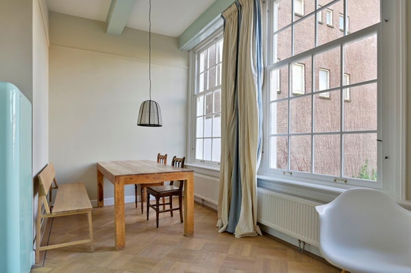 Stylish and Luxuriously Renovated Apartment on the Herengracht – 63 m². Situated in an impressive monumental canal house in the historic heart of Amsterdam, this high-end renovated and (semi-)furnished apartment of 63 m² is located on the first floor at the quiet rear side of the building. The property combines modern comfort with authentic features such as an original wooden beam ceiling and large characteristic windows. Welcome to Herengracht 120-C.
