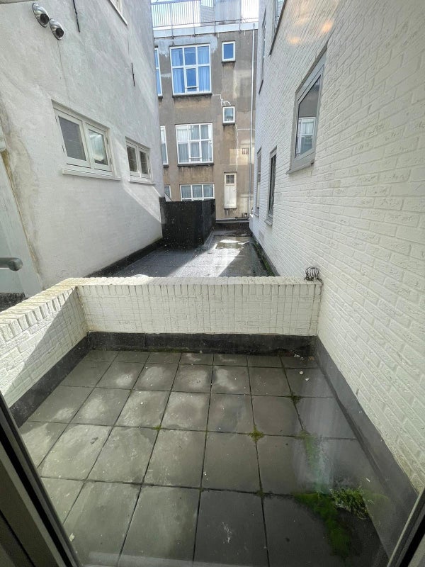 The property features two spacious bedrooms, both located at the quiet rear side of the building. One of the bedrooms provides direct access to a private balcony of approximately 6 m², offering a pleasant outdoor space away from city noise.