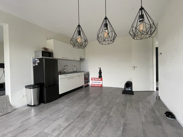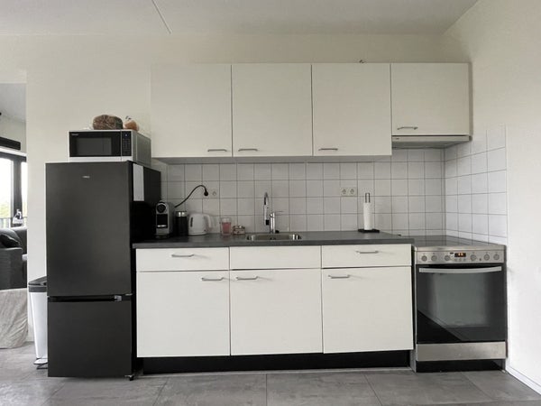 Are you looking for a modern and practical apartment in a prime location? This bright 3-room apartment offers plenty of space, comfort, and convenience. Upon entering, you come into a spacious hallway that provides access to all the rooms. There are two nice bedrooms, ideal as a master bedroom and a study or guest room. The tidy bathroom is equipped with a sink and shower wall, while the separate toilet is accessible from the hallway. In the storage room, you can easily store extra belongings. The kitchen is fitted with a hand-mixed faucet and built-in extractor hood, and the bright living room has French windows with a safety barrier, allowing you to enjoy lots of fresh air and comfort.