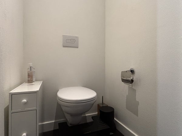 A shared bicycle storage room and a sunny rooftop terrace make this apartment a delightful place to live.